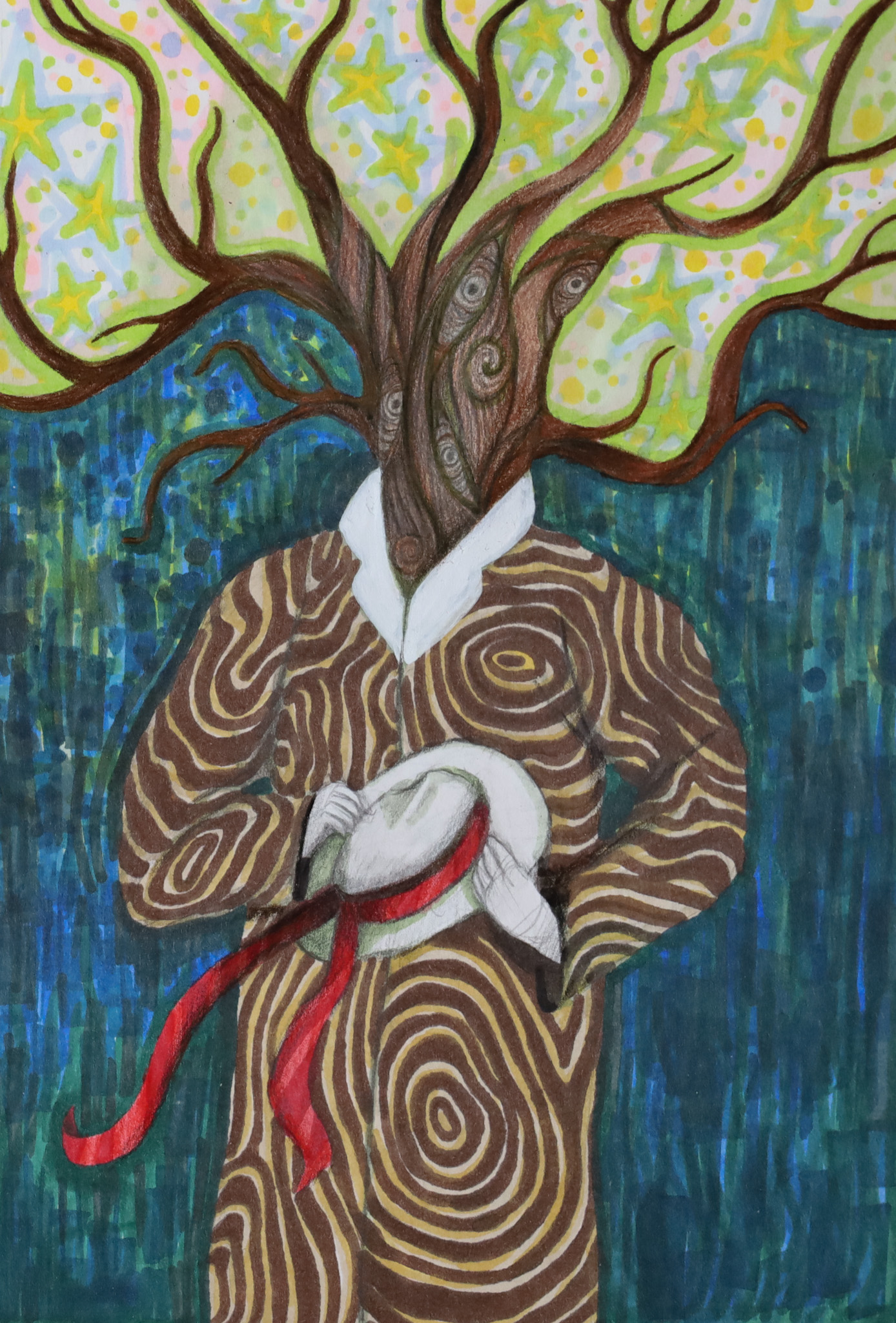 This is more commonly referred to as “The David Bowie” drawing, which is now more accurate than the original title. It was an experimentation with bright colors, and the use of multiple mediums to convey different textures.